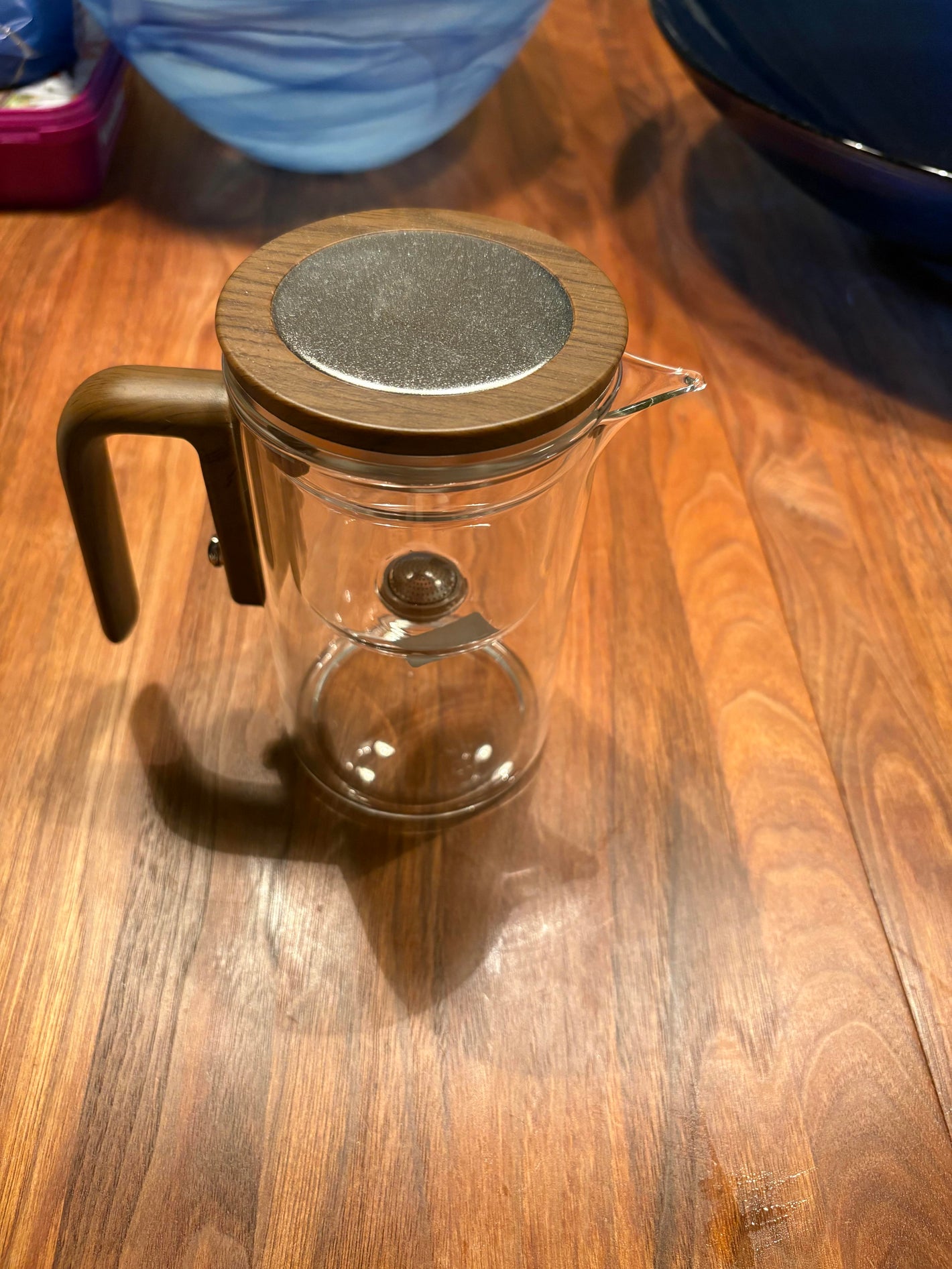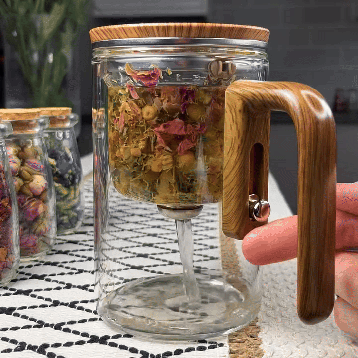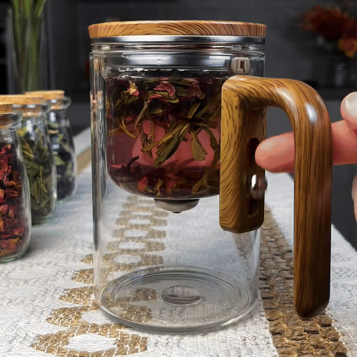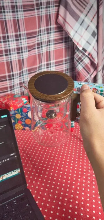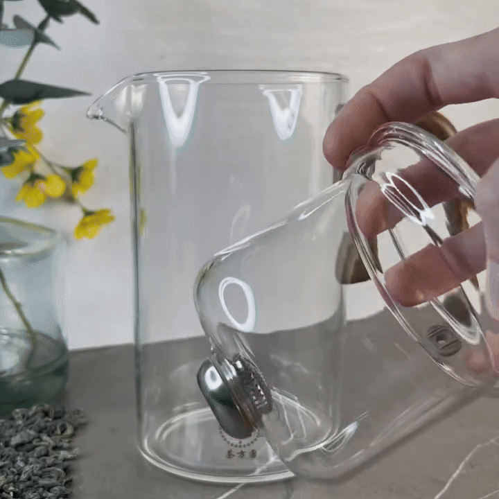Our teapot's elegant design showcases your tea as it brews, with a transparent glass body and warm wood accents that bring simplicity and elegance to every moment.